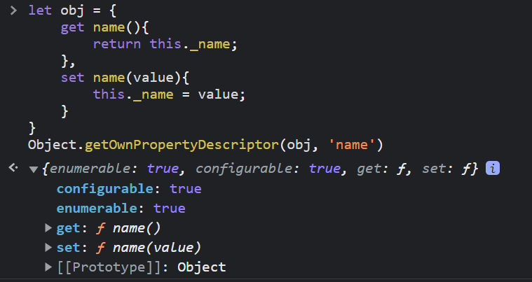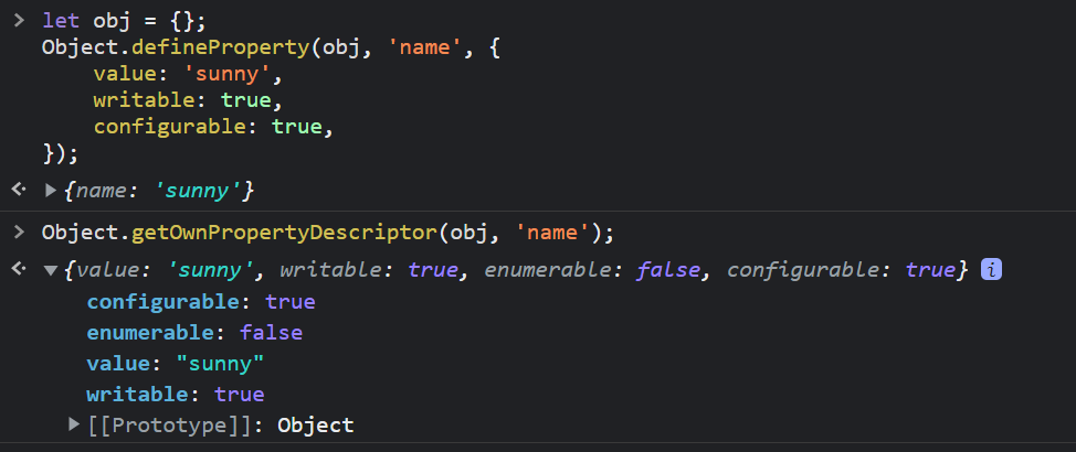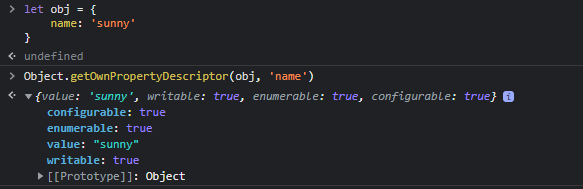 마지막 세 번째 인자로 descriptor 객체를 넘겨주어 직접 obj.name의 값과 플래그들을 설정해주고 있다.
