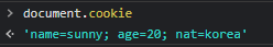쿠키는 문자열로 "키=값" 형태로 값을 할당해주면 새롭게 쿠키가 추가된다.