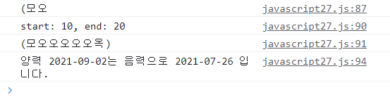 console.log('양력 ' + sola + '는 음력으로 ' + lunar + ' 입니다.');