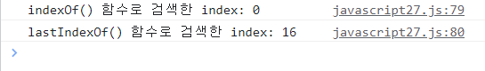 console.log('lastIndexOf() 함수로 검색한 index: ' + name.lastIndexOf(str));