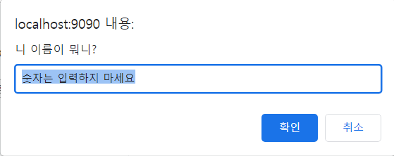 var str = prompt('니 이름이 뭐니?', '숫자는 입력하지 마세요');