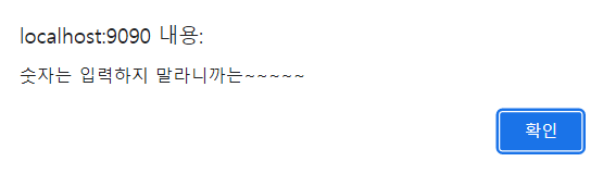 alert('숫자는 입력하지 말라니까는~~~~~');