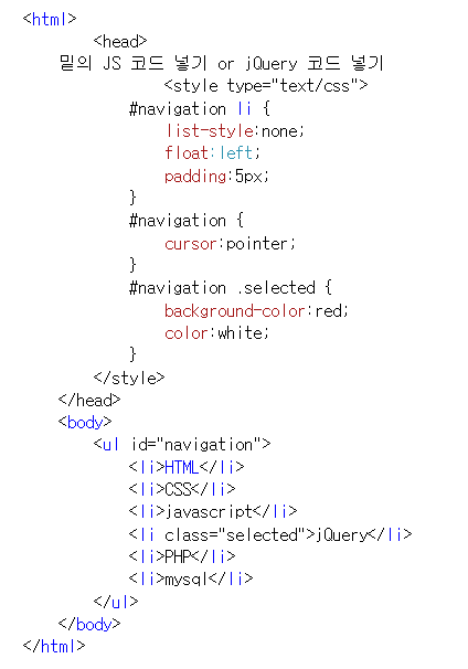 <button type="button" onclick="highLight()">리스트 선택</button>
